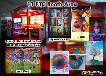 In support of the event’s theme, Come Out and Play, 11 FTC softly launched its offer of lenticular printing tagged as printing motion. The entire 2m x 2m booth was filled with different executions of lenticular printing from a tactical bin header, posters to a 27 in x 37 in lighted ad box and a 46.5 in x 66.5 in wall mural. The featured lenticular animations varied from a 3D view to a flip (changing from 1 image to another) animation, rotate (as in a turning wheel) and morph (similar with flip but with a distortion effect). Among the other animations which were not showcased but equally interesting were opacity, zoom and motion.